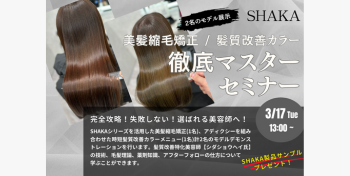 概要 完全攻略!失敗しない!選ばれる美容師へ! SHAKAシリーズを活用した美髪縮毛矯正(1名)、アディクシーを組み合わせた時短髪質改善カラーメニュ…