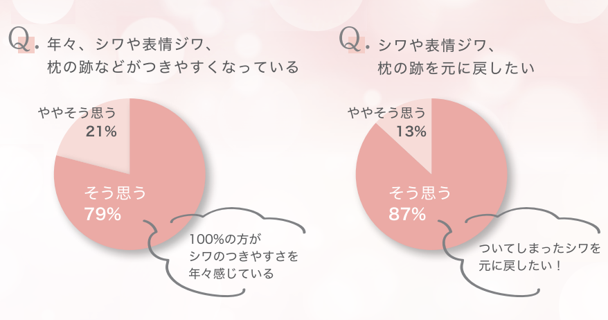 このように多くの方が、歳を重ねるにつれてシワの悩みを感じているという統計が取れました。