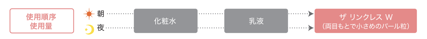 ※クリームを併用する場合は、クリーム→本品(ザ リンクレスW)、朝の使用では本品(ザ リンクレスW)→日焼け止めの順にお使いください。
